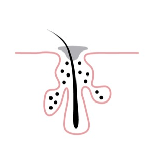Избыток продукции кожного сала и его накопление в протоке вместе с кератиновыми массами приводит к закупорке поры, образуется комедон (черная, белая точка)2